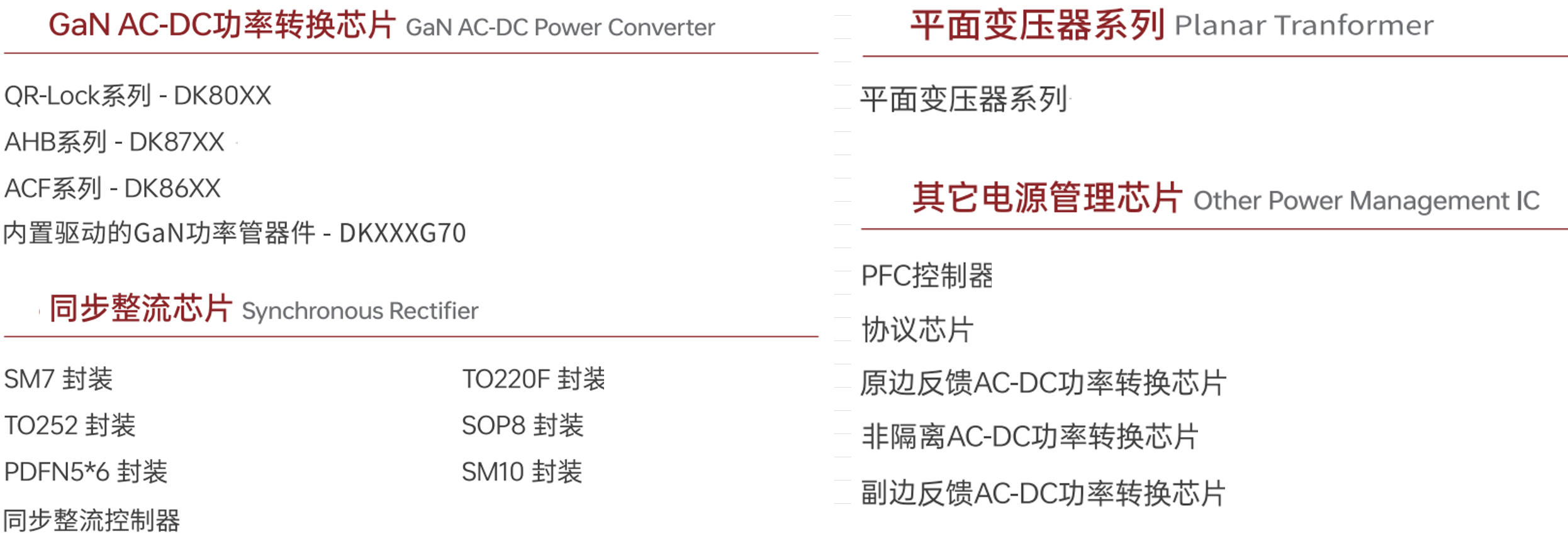 一是高性能模拟和数模混合电源管理芯片:包括AC-DC控制器(QR、PFC、LLC等系列)、同步整流芯片以及高精度电压基准和稳压器。